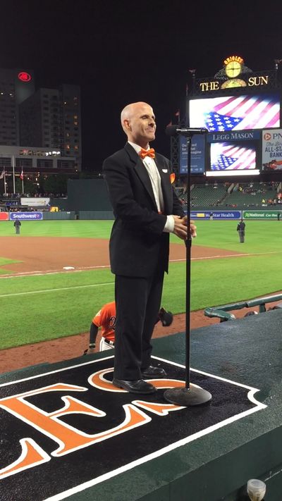 His local résumé includes 30 appearances alone for the Baltimore Orioles) and nine professional football games (Baltimore CFL Colts, Baltimore Mariners and Brigade arena football teams). He has also performed over 20 times for the Washington Capitals, and has appeared several times for DC United, the Washington Wizards, Mystics, Nationals, Valor and for many other sporting events in the Baltimore-Washington area.